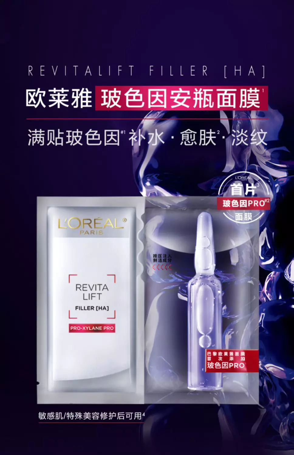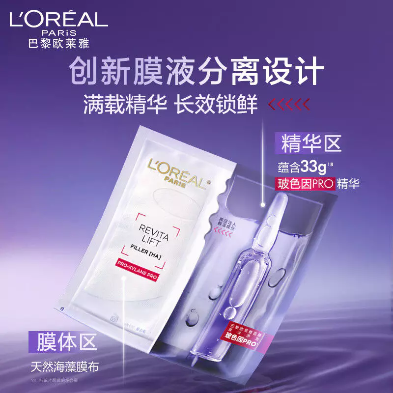 欧莱雅面膜玻尿酸面膜精华淡化细纹玻色因面膜改善干燥修护护肤